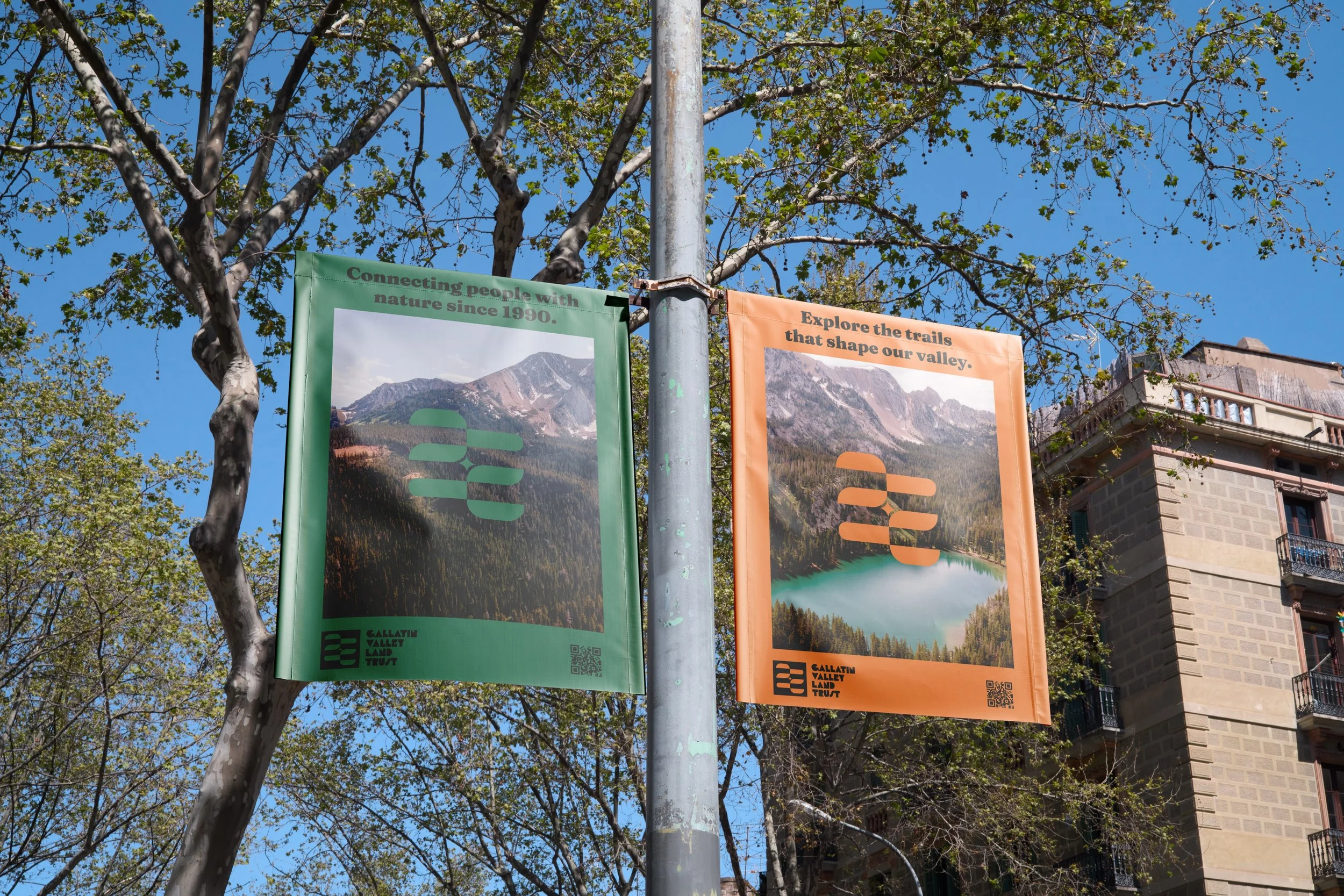 Lightpost banners create a bold, visible presence in high-traffic areas, promoting GVLT’s mission and events. They bring the brand outdoors, showcasing GVLT’s impact in preserving the Gallatin Valley.